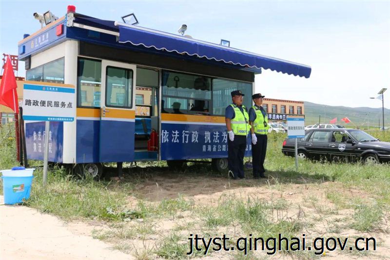 七月的青海湖畔,一望无际,碧海蓝天,一辆车身贴有"依法行政,执法为民"的路政车辆自成一景,随时随地为群众提供人性化服务,充分彰显路政执法为民的服务宗旨,用文明服务树立优良的“窗口”形象,成为服务群众的暖心车、温馨车。 便民服务设施完善。便民执法点配置了服务桌椅、便携食品、医药急救箱、便民伞具、饮用水等;同时,车身前设置的LED电子显示屏,对过往行人进行相关法律法规宣传,成为展示形象普及法律法规的宣传车;推出“三进”服务。即:“走进”群众主动对接;“拉进”与群众的距离,面对面零距离服务,“推进”为群众办实事工作落到实处。执法人员为过往群众提供出行咨询、疫情防控、公路法宣传等贴心和暖心服务,提醒过往车辆减速慢行;认真履行路政服务亮承诺。执法时亮证上岗服务,文明礼貌执法,履职尽责、规范执法,时刻凸显阳光路政执法“形象”。