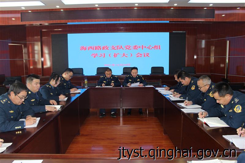 12月24日,海西路政支队党委召开中心组学习(扩大)会议,重点传达学习了2022年全国交通运输工作会议精神以及《中国共产党统一战线工作条例》全文,支队党委班子成员、机关各科室工作人员、德令哈路政大队干部职工参加了会议。