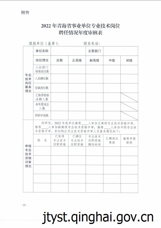 2022年青海省事业单位专业技术岗位聘任情况年度审核表