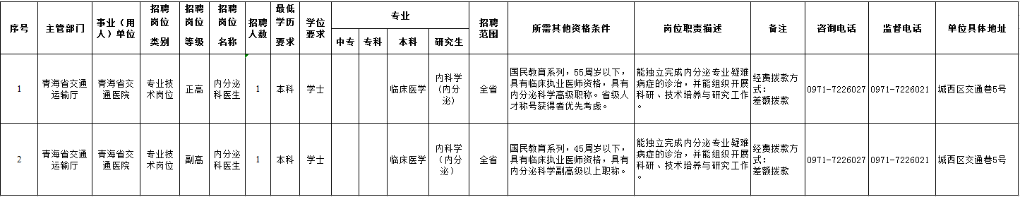 附件:2023年青海省交通医院公开招聘工作人员计划表