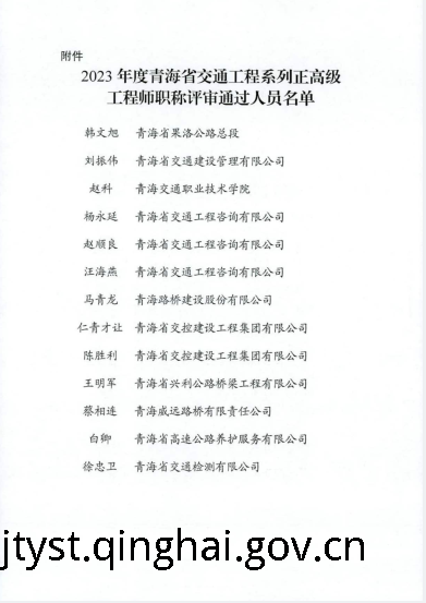 2023年度青海省交通工程系列正高级工程师职称评审结果公示